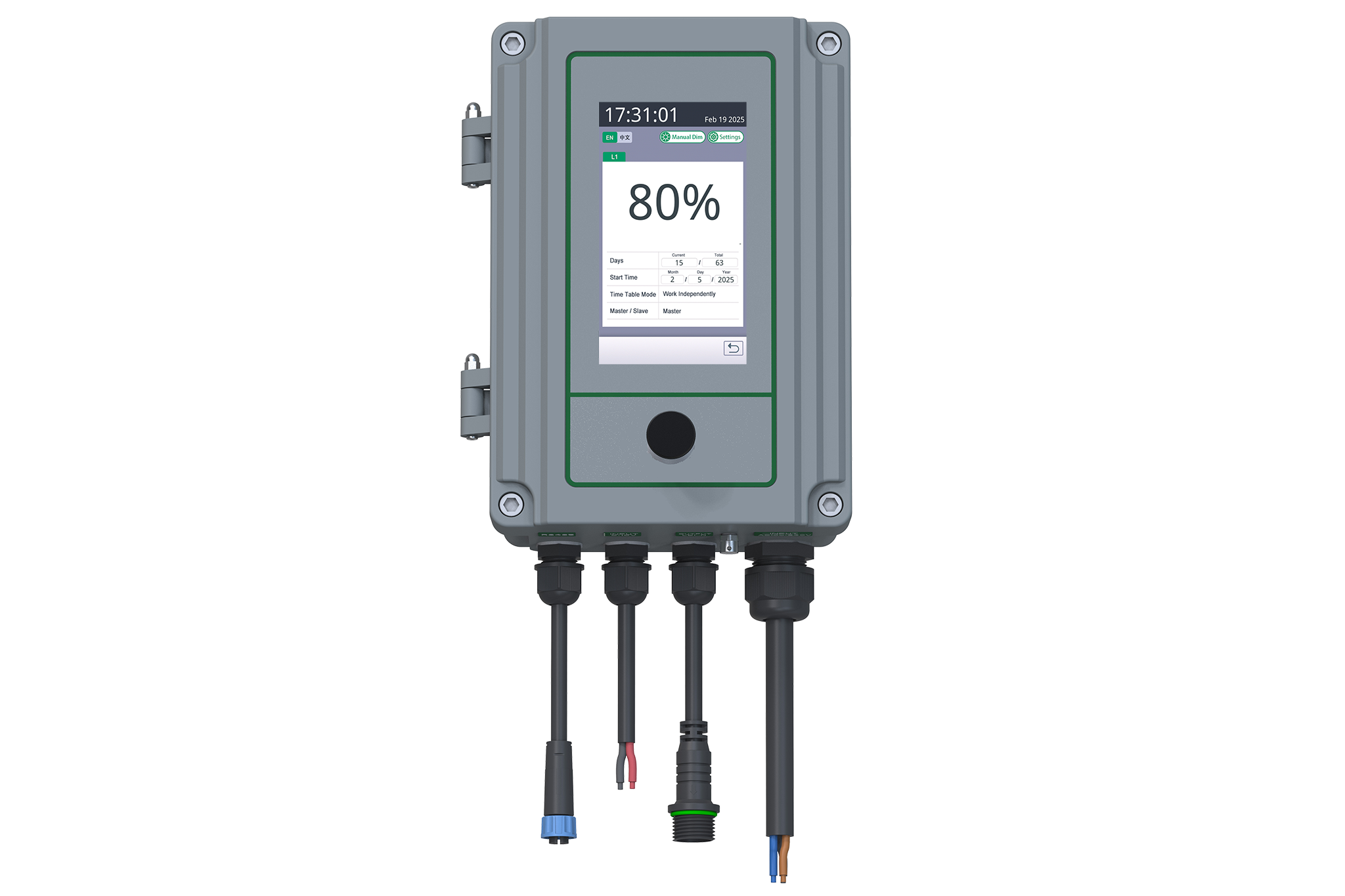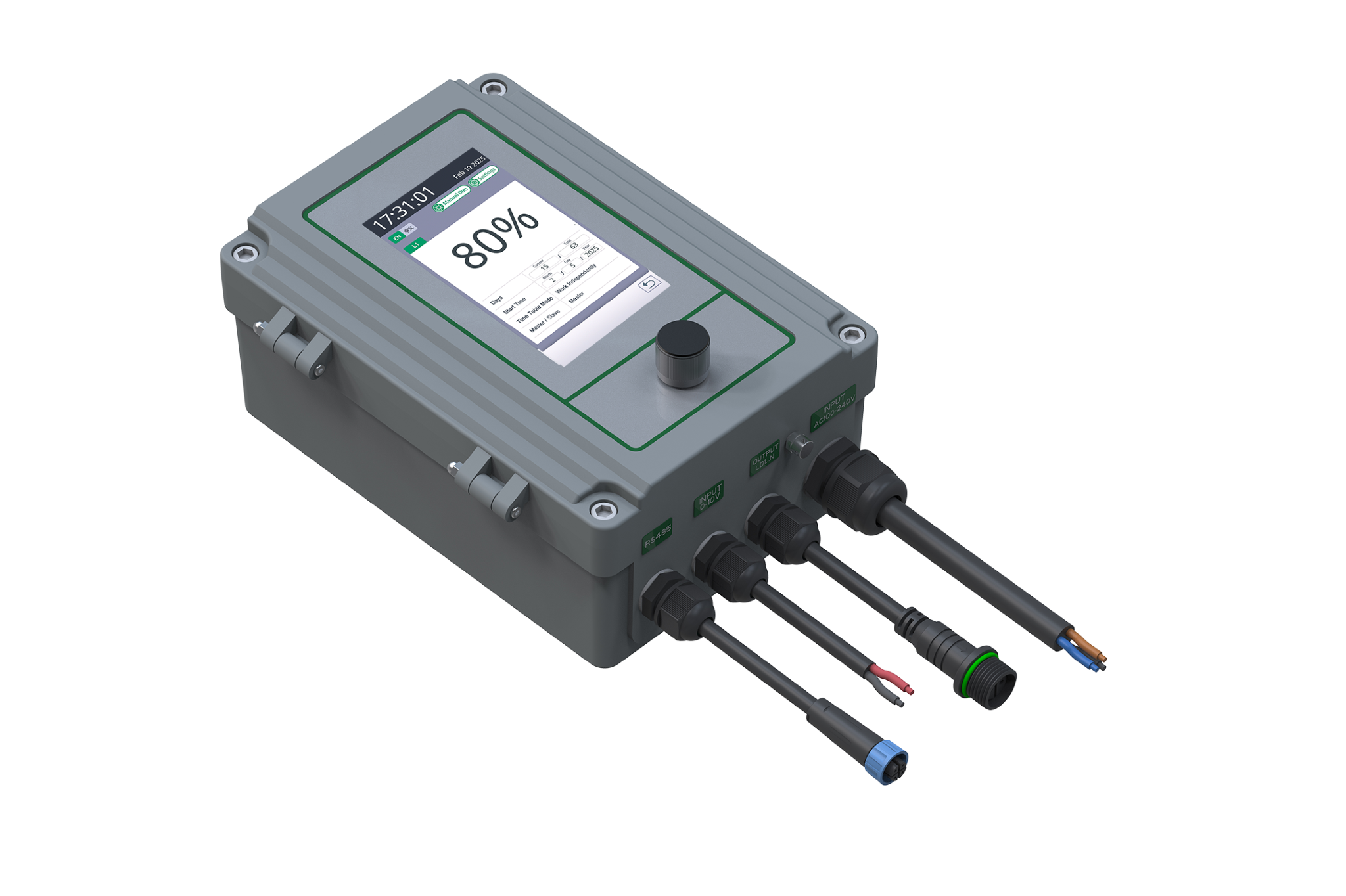 The built-in timetable feature automatically adjusts the brightness of the LED lights based on a preset schedule, optimizing the management of the breeding cycle. Additionally, the controller can integrate with the 0-10V signal from an upper-level breeding controller, allowing the brightness of the LED lights to be controlled by the primary system.