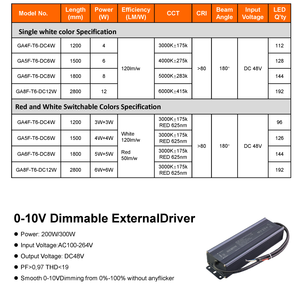 The Gogus T6 lamp tube is specifically designed to meet the DC48V DC lighting solution requirements of livestock farms. It incorporates 0-10V dimming technology, advanced LED technology, and an IP67 waterproof structural design, providing wide-angle illumination, plug-and-play functionality, and easy installation. When paired with the Gogus dimming controller, it can simulate sunrise and sunset, adjust the illumination level during different breeding stages, and provide an ideal lighting solution for the entire life cycle of poultry.