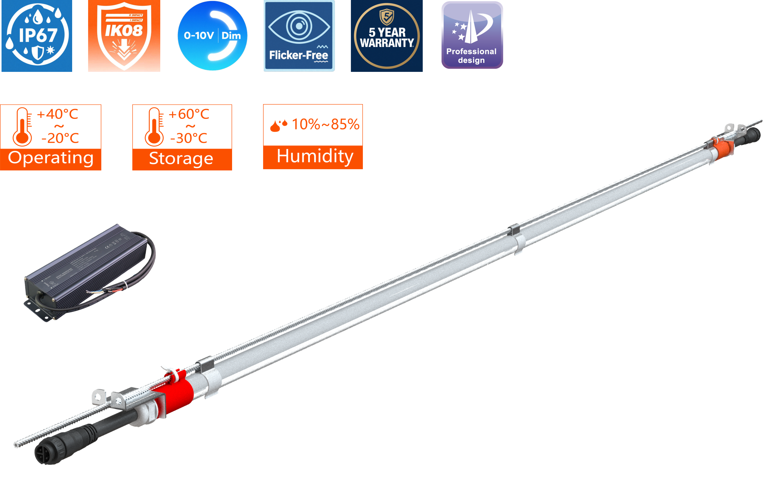 • Ideal for poultry industry lighting with anti-ammonia and anti-acid properties.